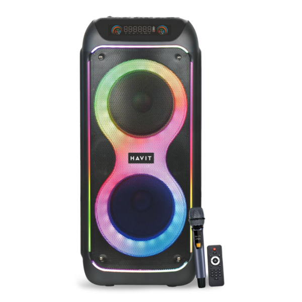 Havit SQ149BT-EU je robustan party zvučnik snage 100W dizajniran da dominira prostorom, bilo da planirate kućnu žurku ili karaoke veče na otvorenom. Sa svojom impresivnom visinom od preko 70 cm i namenskim mikrofonom, predstavlja ozbiljan audio sistem za korisnike koji traže intenzivan zvuk i dugu autonomiju.