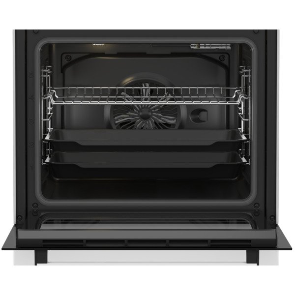 Beko FBE67100GWS je samostojeći električni šporet pune širine (60 cm) sa staklokeramičkom pločom, koji spaja moderan dizajn i napredne funkcije pečenja. Zahvaljujući velikoj zapremini rerne i ventilatorskom sistemu, ovaj model je idealan za porodice koje pripremaju obimnije obroke i očekuju ujednačene rezultate pečenja na svim nivoima.