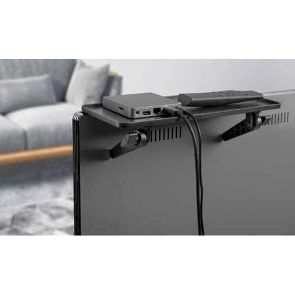 Jedinstvena TV medijska polica NSTB300 nudi novo rešenje za držanje uređaja iznad TV-a - uključujući medijske kutije, daljinske upravljače i druge predmete.